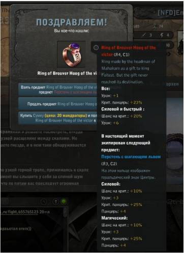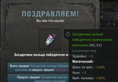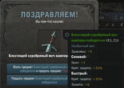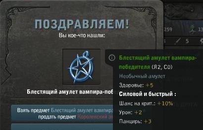 | теперь пара амулей... блестящий амулет вампира древний амулет железного здоровья одно колечко и меч загадочное кольцо победителя жемчужного молчания (интересно, как молчание может быть жемчужным??? блестящий серебряный меч вампира опять же ничего из этого я себе не оставил, т.к. либо шлак, либо не для меня (((