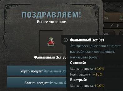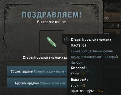 | а теперь то, что реально мне пригодилось и что я юзаю: фальшивый Эст Эст - мой самый любимый эликсир много раз спасавший шкуру моей сорки))) элексир Сабрины Глессвиг - ничего особенного... 3 оселка... махакамский оселок старый оселок гномьих мастеров ну а с этим оселком связан один курьез... я его сфоткал и благополучно бросил))) оч жалко было((( т.к. оселок ничего так! сломанный шлифовальный камень от такие плюшки порой выпадают))) кстати, решил я тут попробовать зелье везения... редкостное овно, скажу я вам!!! толку - ноль, т.к. выпадает бесполезный и дешевый шлак. хотя может эт мне так не повезло...
